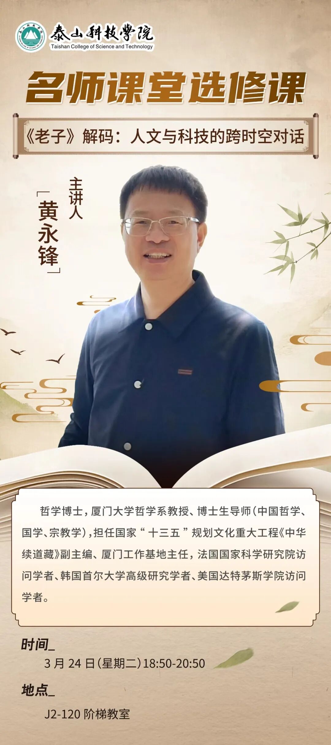 - 【名师课堂选修课预告】黄永锋|《<老子>解码:人... 03-20