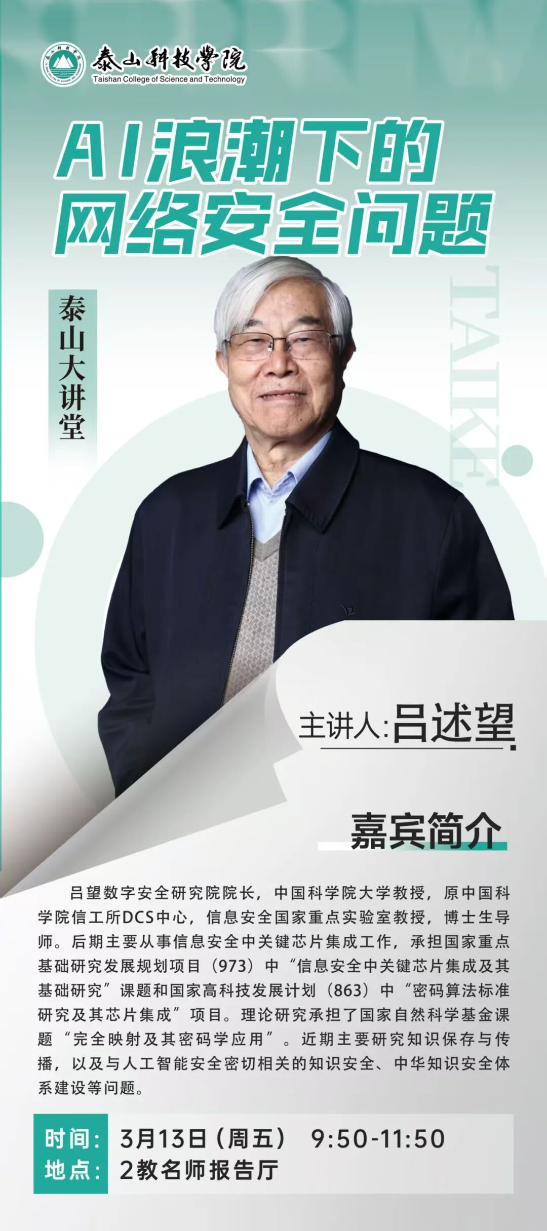- 【泰山大讲堂】第230讲预告|《AI浪潮下的网络安... 03-11