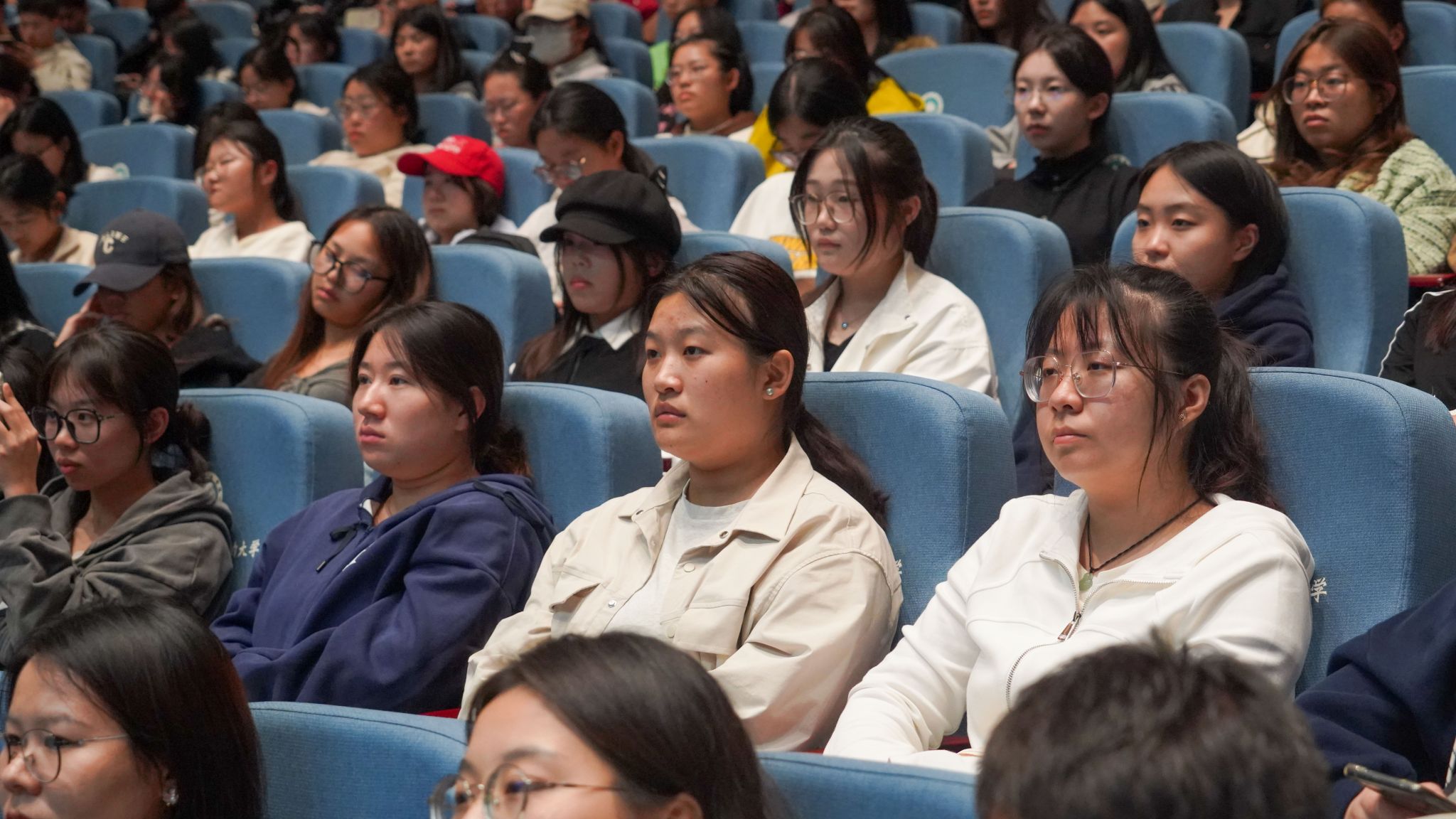 在互动环节,敬老师与师生探讨“沟通的方法与边界”。她强调“女孩可以安静,但不能失去沟通的能力”,并指出线上交流无法替代线下的温度:“当我们在台上、台下真实地看见彼此,沟通才真正发生。”现场被邀请上台的学生王林一,在与敬一丹的对话中,完成了一次“从听众到参与者”的沟通实践。这种双向的共鸣,恰是“在路上 一直有光”的生动注脚——光源于真诚的表达,也源于用心的聆听。