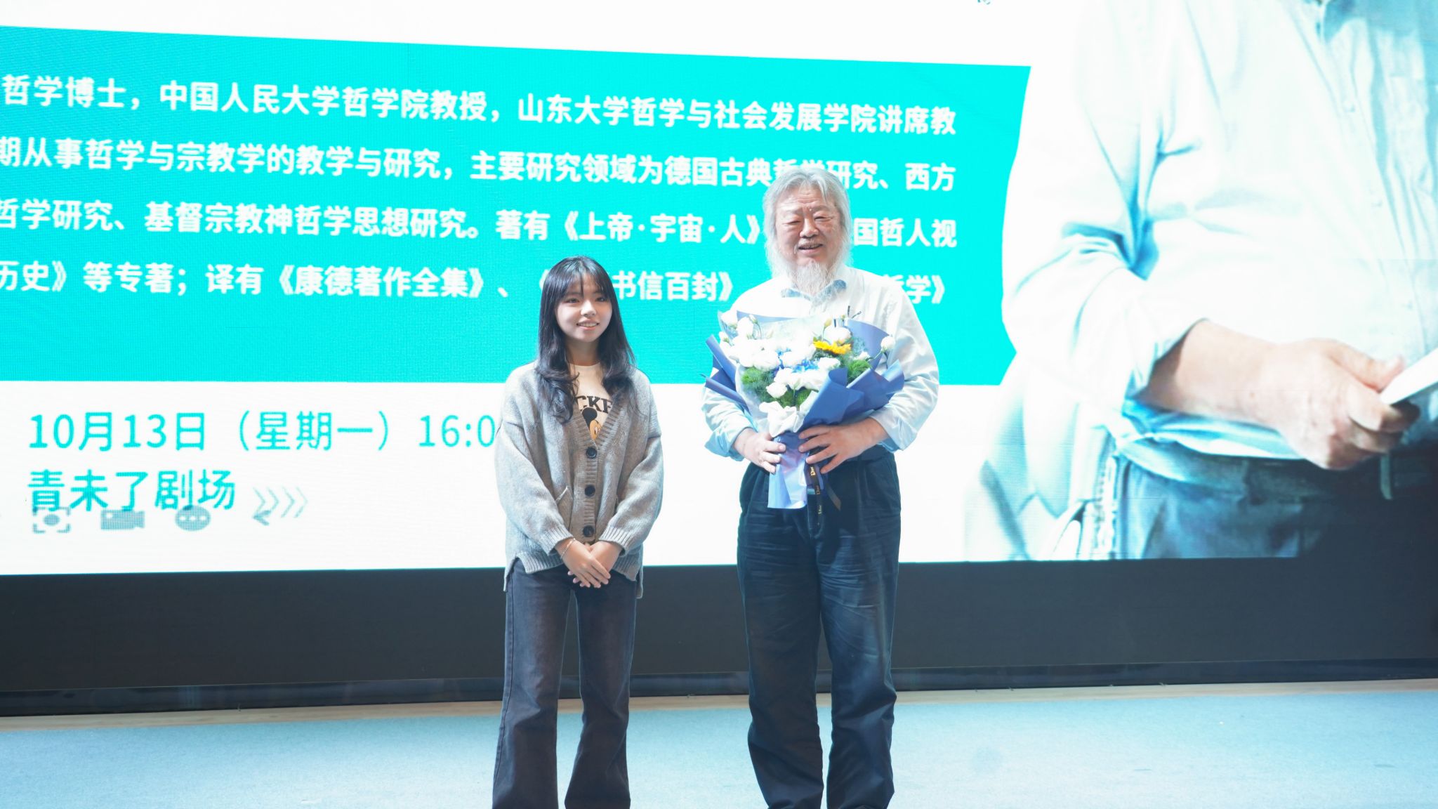 随后的互动环节中,学生代表为李教授献花,听众提问热烈,从“如何用康德哲学应对时代发展”到“科技时代如何保持审美纯粹性”,李教授一一回应。在场师生深受感触,表示康德的思想如同“精神过滤器”,帮助自己在繁杂中辨明方向、守住本心。同学们在本次精神世界的“寻根之旅”中纷纷表示,先前觉得高深的哲学,现在发现与生活密不可分。康德思想讲的“真”是清醒认知,“善”是做人底线,“美”是生活情趣,这正是我们需要的生活智慧。