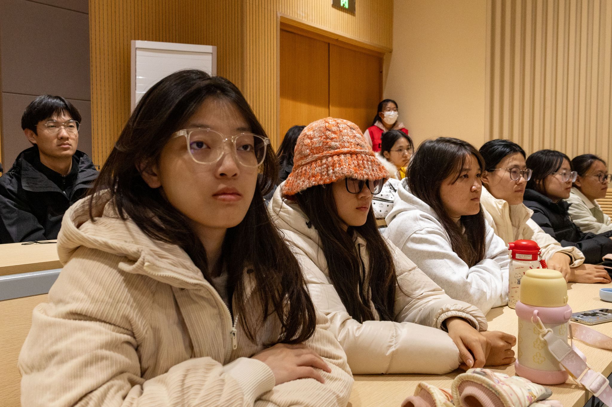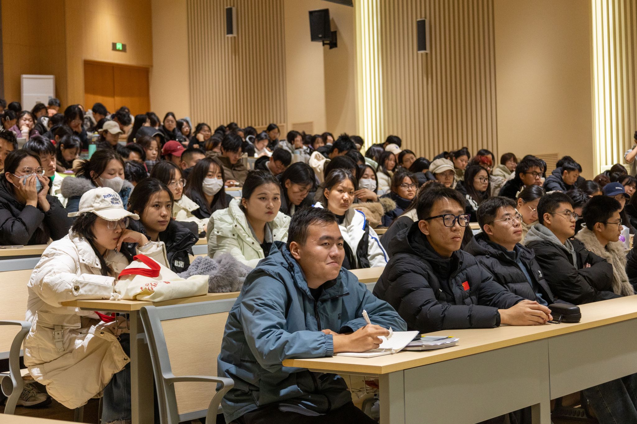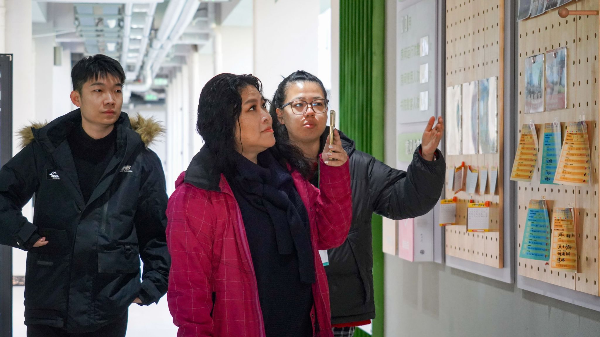 讲座开始前,邹老师入校开启参观行程,由名师课堂办公室老师陪同。首站抵达岳泳馆,参观感受“最体育的非体育大学;随后前往万画影城观看《风拂育英》,沉浸式了解学校育人故事;接着在环山剧院欣赏《泰山小满活动掠影》,直观感受校园文化活动风采。最后走进敢当书院及完满教育体验中心,详细介绍书院育人理念,作为“双院制”核心载体,其整合了专业教育与通识教育,设有文化展示墙、共享研讨室、创意实践区等多元空间,常态化开展“特色活动,深度落地完满教育。邹老师驻足参观各功能区域,与随行人员探讨书院场景下的创新育人路径,真切感受书院深厚的育人底蕴与鲜活的文化氛围。
