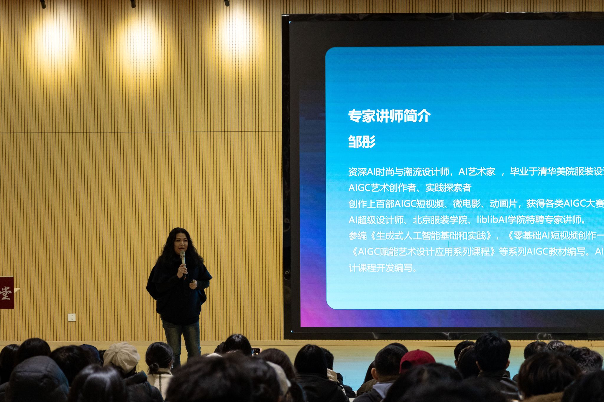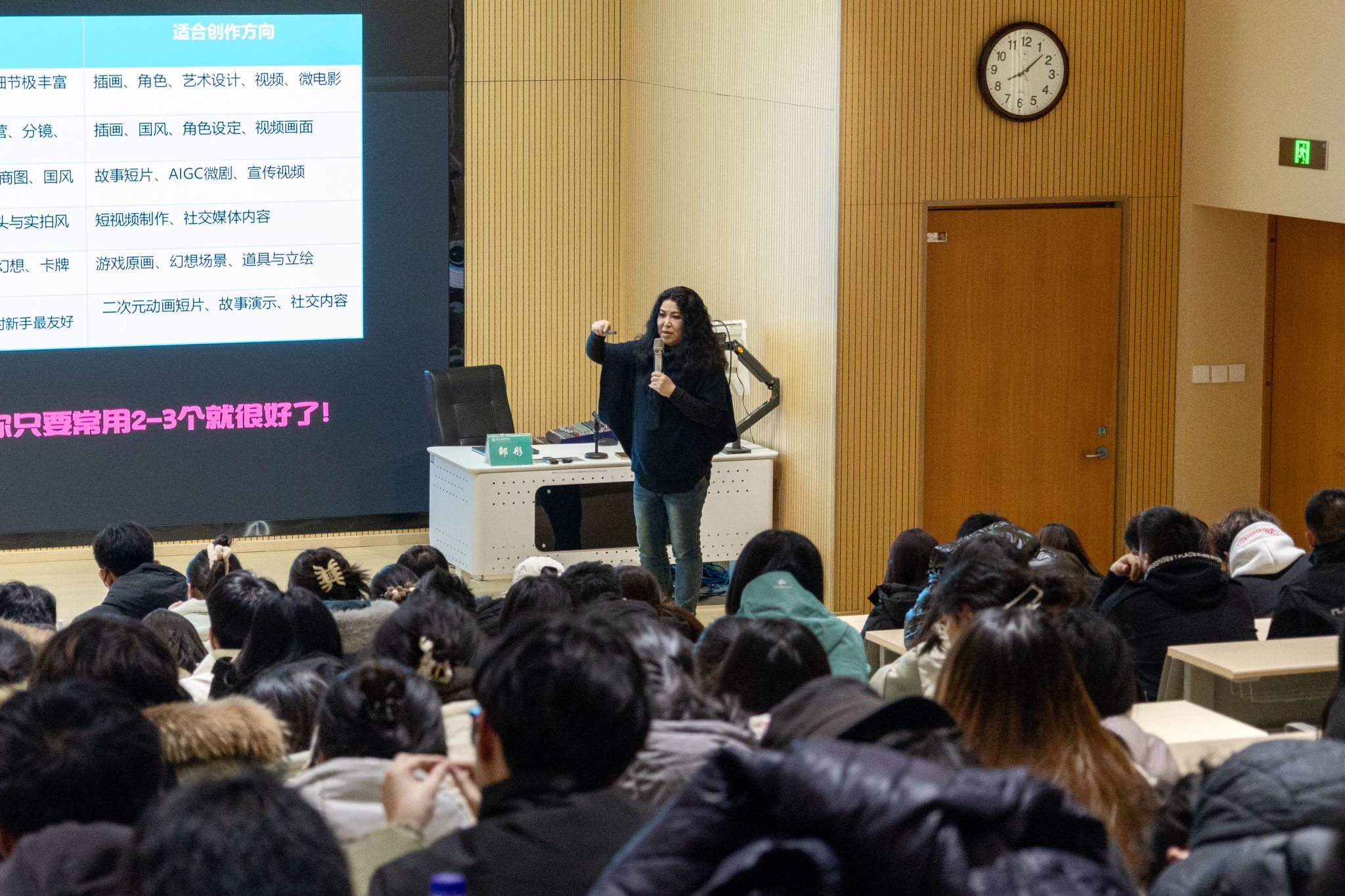 邹老师在讲座中回应学生关注的版权风险与风格同质化问题:版权方面,国内 AI 平台有合规筛查机制,参考素材需获授权;风格打造需“垂直创作 + 细节注入”,通过专属符号形成个人辨识度。互动环节,学生围绕提示词优化、内容润色提问,邹老师建议以“细节量化”写提示词,并举实例说明,同时鼓励通过多轮测试掌握 AI 使用节奏。