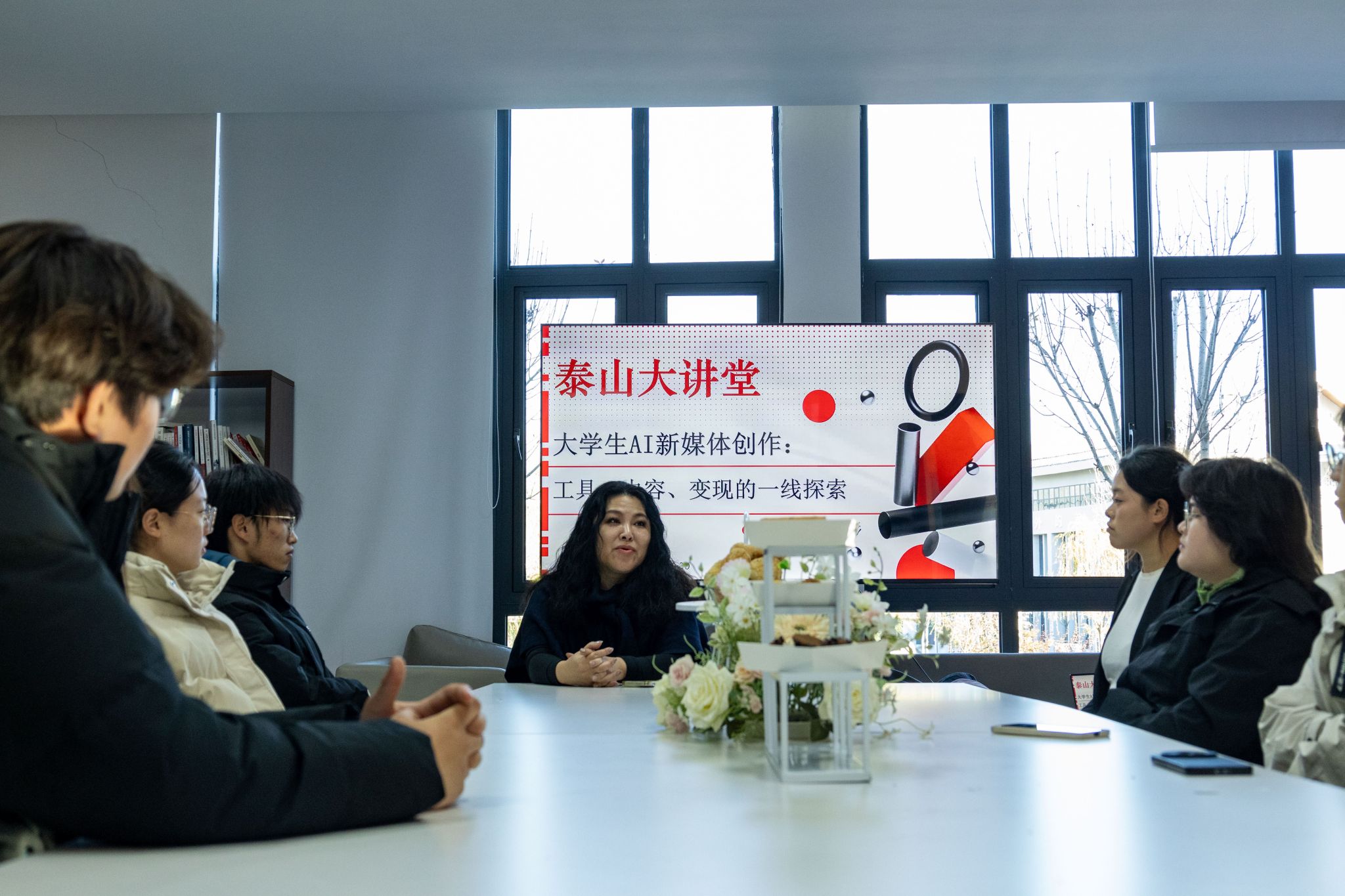 为帮助学生把握AI时代创作机遇,提升新媒体内容生产能力,11月18日,讲座开始前邹老师进行参观校园,随后一场以《让AI成为你的合作者:开启新媒体创作的无限可能》为主题讲座于泰山大讲堂开展。当天下午,邹老师还与同学们以“大学生AI新媒体创作:工具、内容、变现的一线探索”为题举办师生座谈会。通过这两场活动,助力学子创作者从“工具使用者”向“创意主导者”转型。