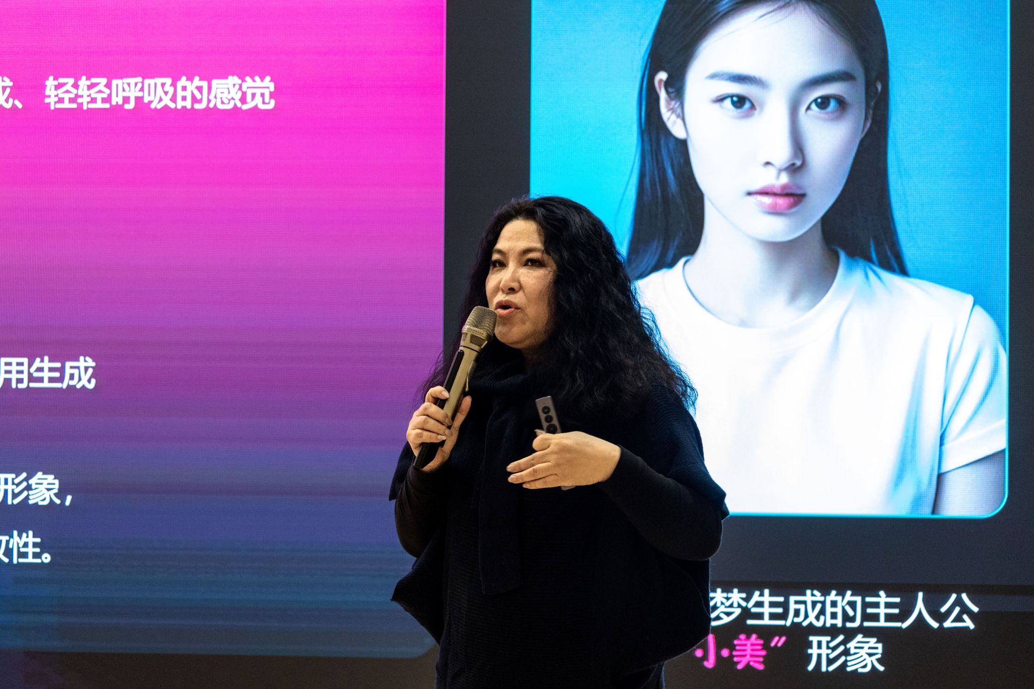 针对AI创作流程,邹老师提出“想、说、选、改”四步法则:第一步“想”,明确创作主题与核心需求;第二步“说”,将想法转化为逻辑清晰的提示词,需包含风格、场景、细节等关键信息;第三步“选”,凭借审美判断从多版AI生成内容中筛选适配素材;第四步“改”,结合个人创意优化细节。同学们在邹老师讲完之后纷纷表示受益匪浅,通过四部法则真正的学习到了如何用AI创作。