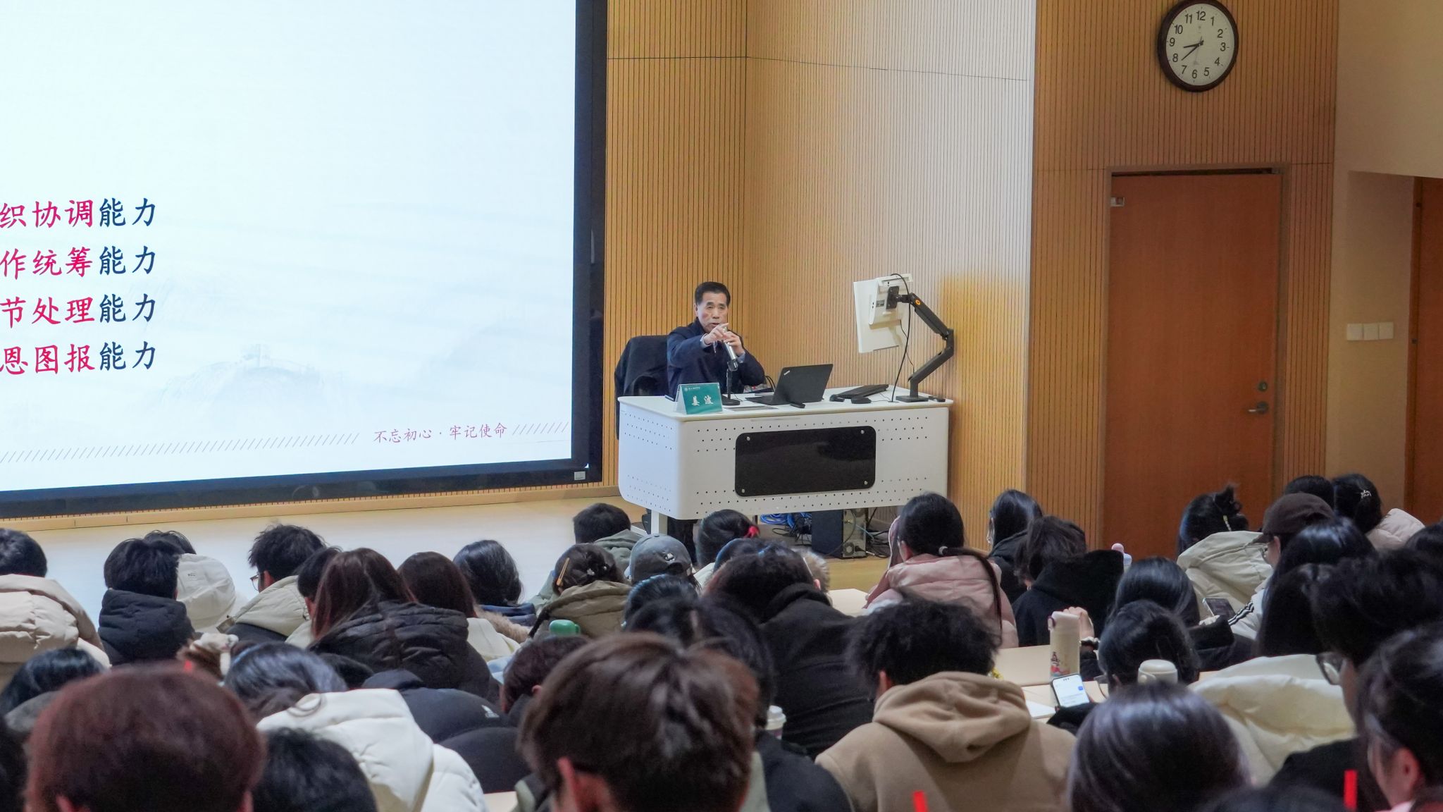 姜教授从“让红色基因注入当代青年的使命价值、赋予当代青年卫国的责任价值、注入当代青年强国的担当价值”三个维度,构建起逻辑清晰的红色育人体系。他回顾了不同历史时期中国青年的使命担当,强调“一代人有一代人的责任”,红色基因作为中华民族的精神血脉,必须在青年一代中赓续传承。他鼓励师生“读万卷书、行万里路”,在知行合一中锤炼真本领、涵养好品德,将个人理想融入国家发展大局。