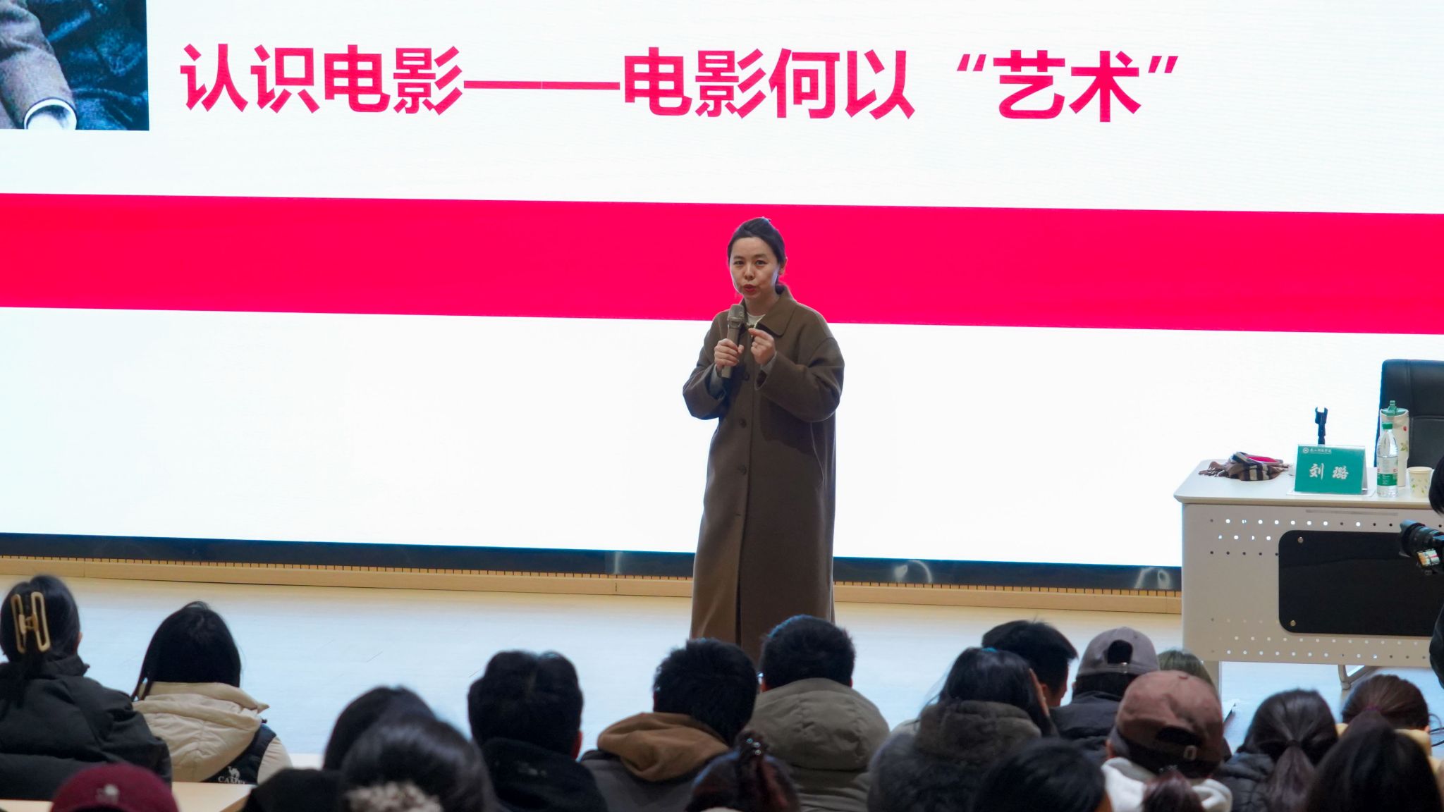 讲座步入尾声,刘教授向学子发出殷切呼吁:“同学们要深耕电影专业知识,善用人工智能,但应理性看待技术赋能,牢记‘内容为王’,媒介是人与人之间情感与思想的链接,真实的情感与深刻的思想永远是这个时代最珍贵的创作内核。”她寄语学子在光影世界中汲取优秀文化养分,强化文化自觉与审美能力,让美育精神融入成长全过程,在艺术浸润中塑造健全人格。思想的碰撞、观点的交流,进一步拓宽了学子们对电影艺术的认知维度。