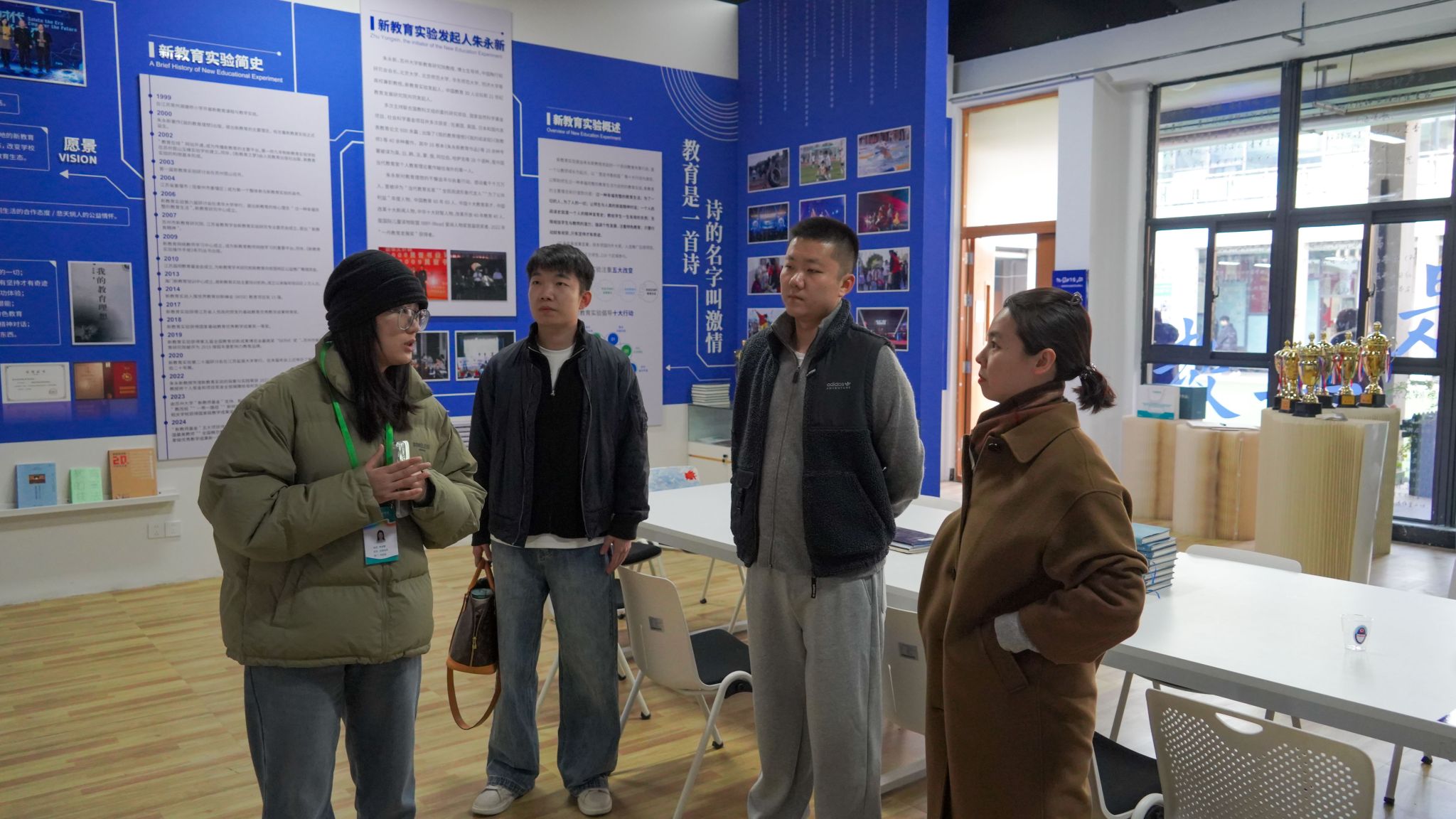 当天下午,名师课堂办公室全程陪同刘璐教授参观校园文化建设,先后走进岳泳馆、万画影城、环山剧院、汶阳书院、东岳书院及非遗博物馆,在沉浸式体验中感受校园文化。陪同老师沿途细致讲解书院建设、课程体系及新教育实验开展情况,彰显书院多元育人价值。刘璐教授对学校“完满教育”实践落地成效给予高度评价,将电影艺术、校园建设、书院文化与非遗传承有机串联,不仅拓宽了学子认知视野,更让大家切实体会到美育教育与校园文化的深度融合,为后续学习与创作积累了丰富实践。
