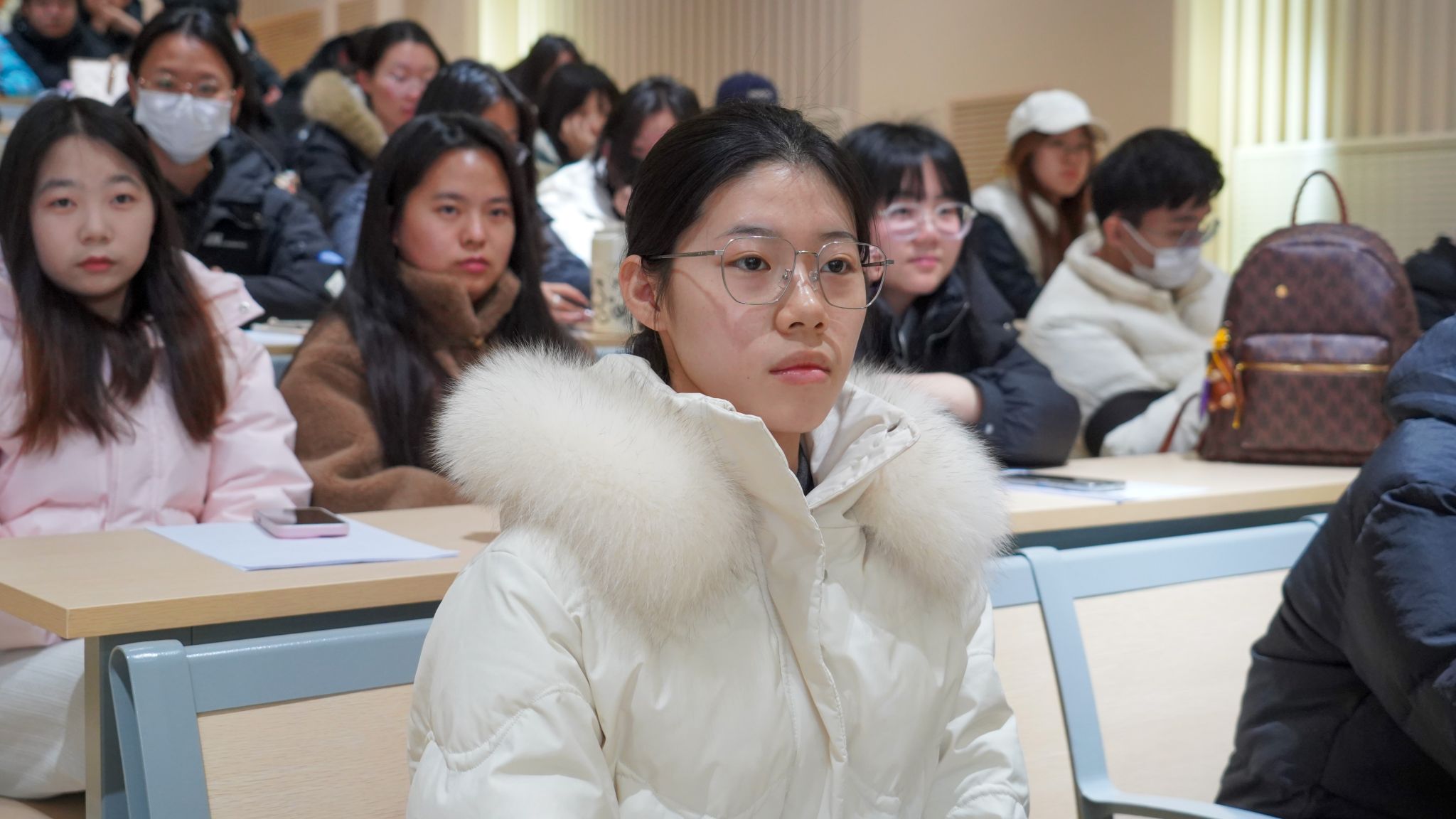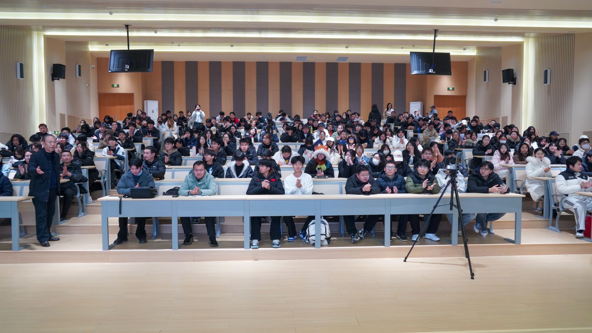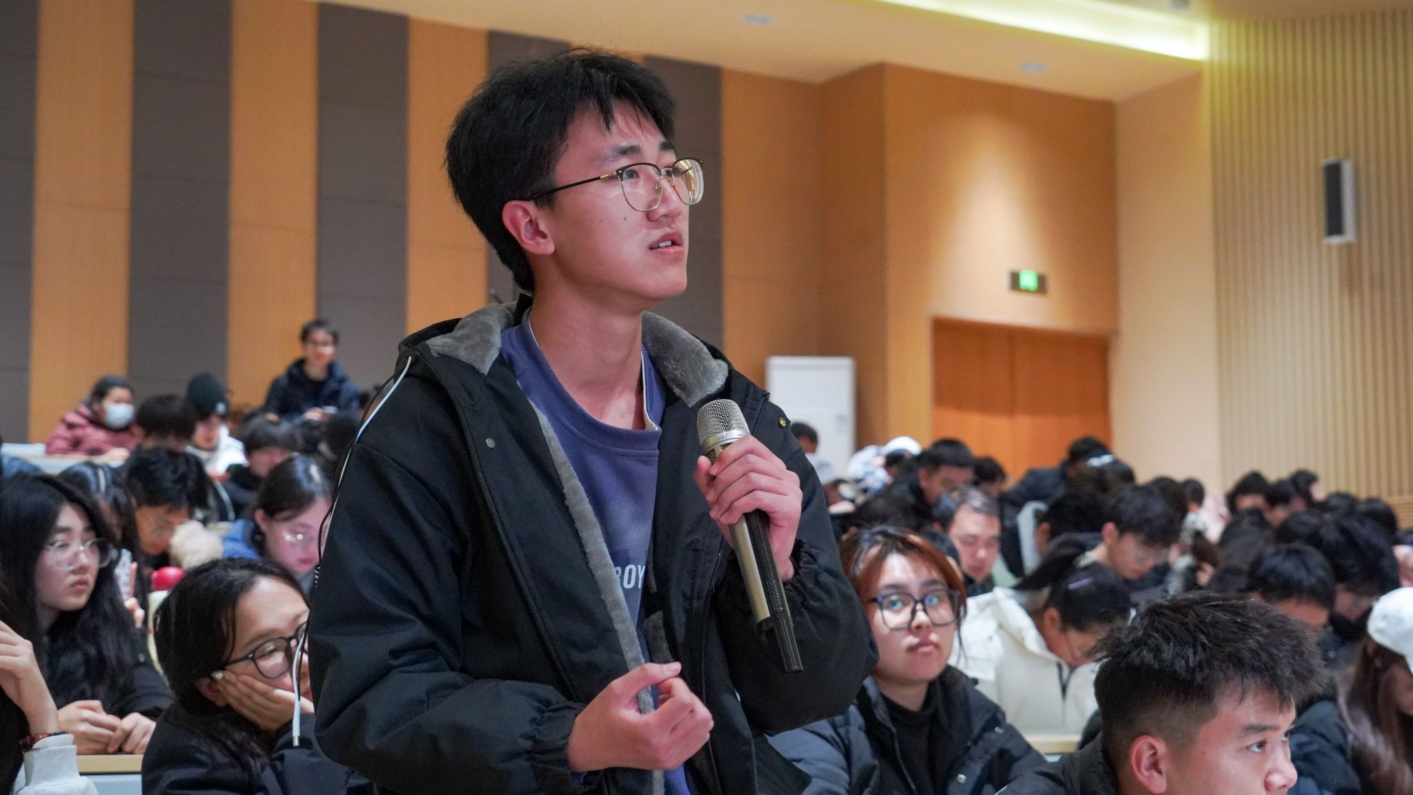 讲座尾声的观众提问环节氛围热烈,同学们积极踊跃举手发言,围绕土地主题与创作理念展开深入交流,赵教授细致地逐一解答。期间同学们提出了诸多深刻提问,赵教授结合自身人生阅历与时代背景耐心解答,他勉励青年学子,可从主动了解农耕文化、参与农耕体验活动做起,拉近与土地的距离;土地是国家发展的根基,守护土地本质上就是守护家园、担当家国责任,珍惜土地、传承农耕文化,便是家国情怀最朴素、最真挚的表达。