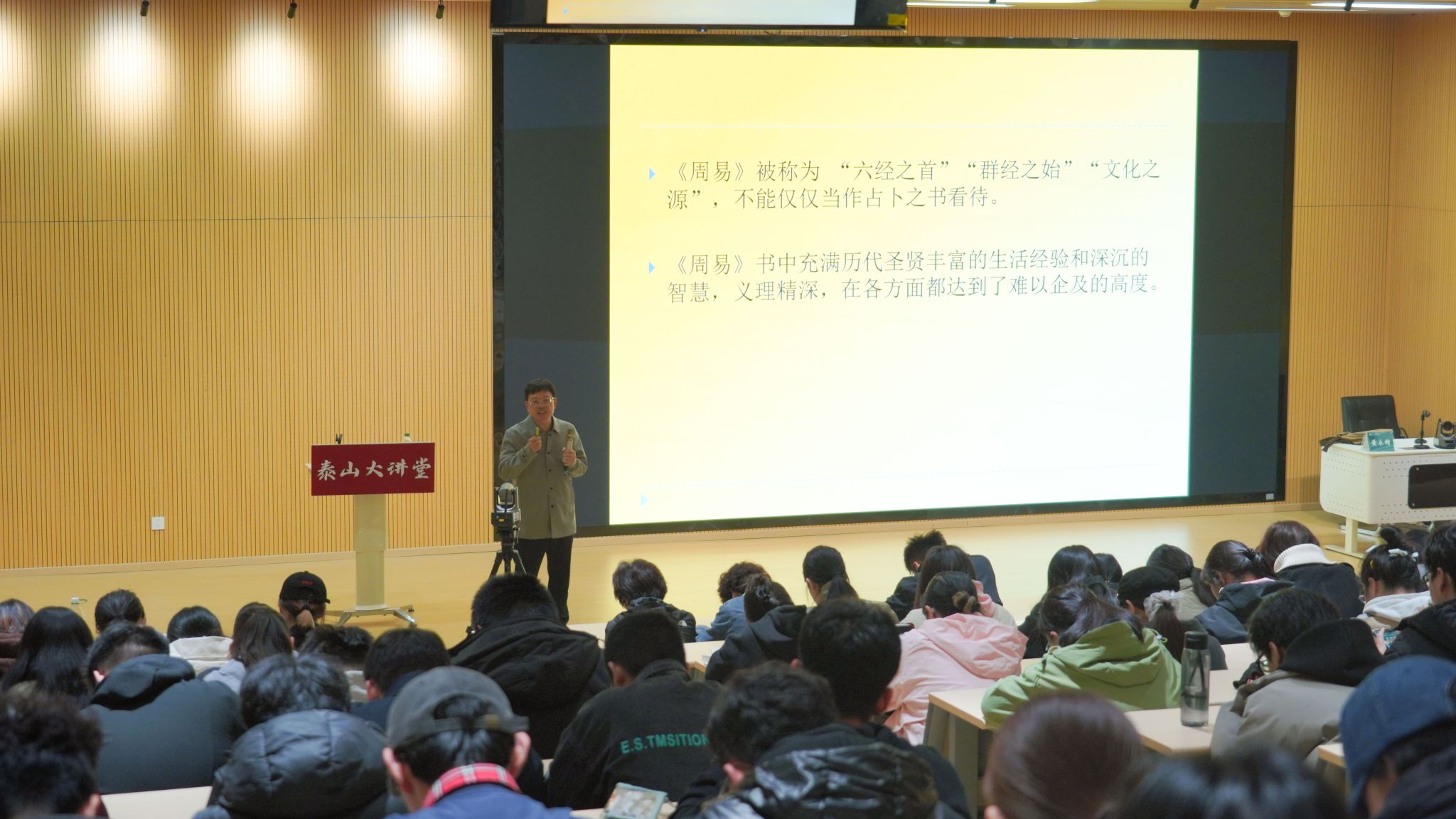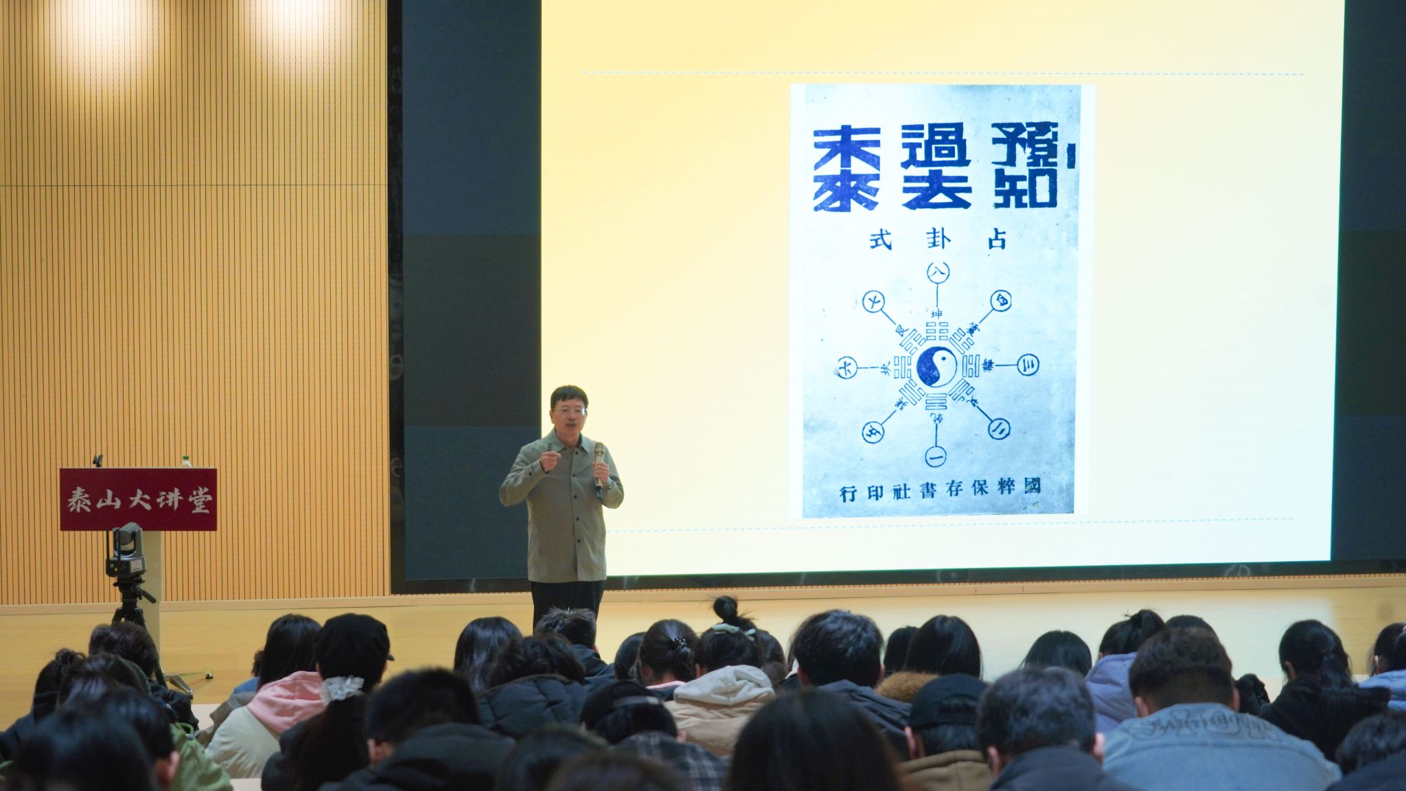 在全球化浪潮与学科交叉日益成为主流的今天,源远流长的国学智慧如何与现代生活碰撞出新的火花?10月23日,名师课堂办公室特邀黄永锋教授莅临泰山大讲堂,开启名师课堂选修课程“国学智慧与学科融合”的专题系列讲座。黄永锋教授通过深入浅出的讲解,生动展现了传统智慧、个人修养、健康养护、决策等方面对话的可能与价值,引发了在场学子对构建既有民族底蕴又有时代精神的学术范式这一命题的深入思考。