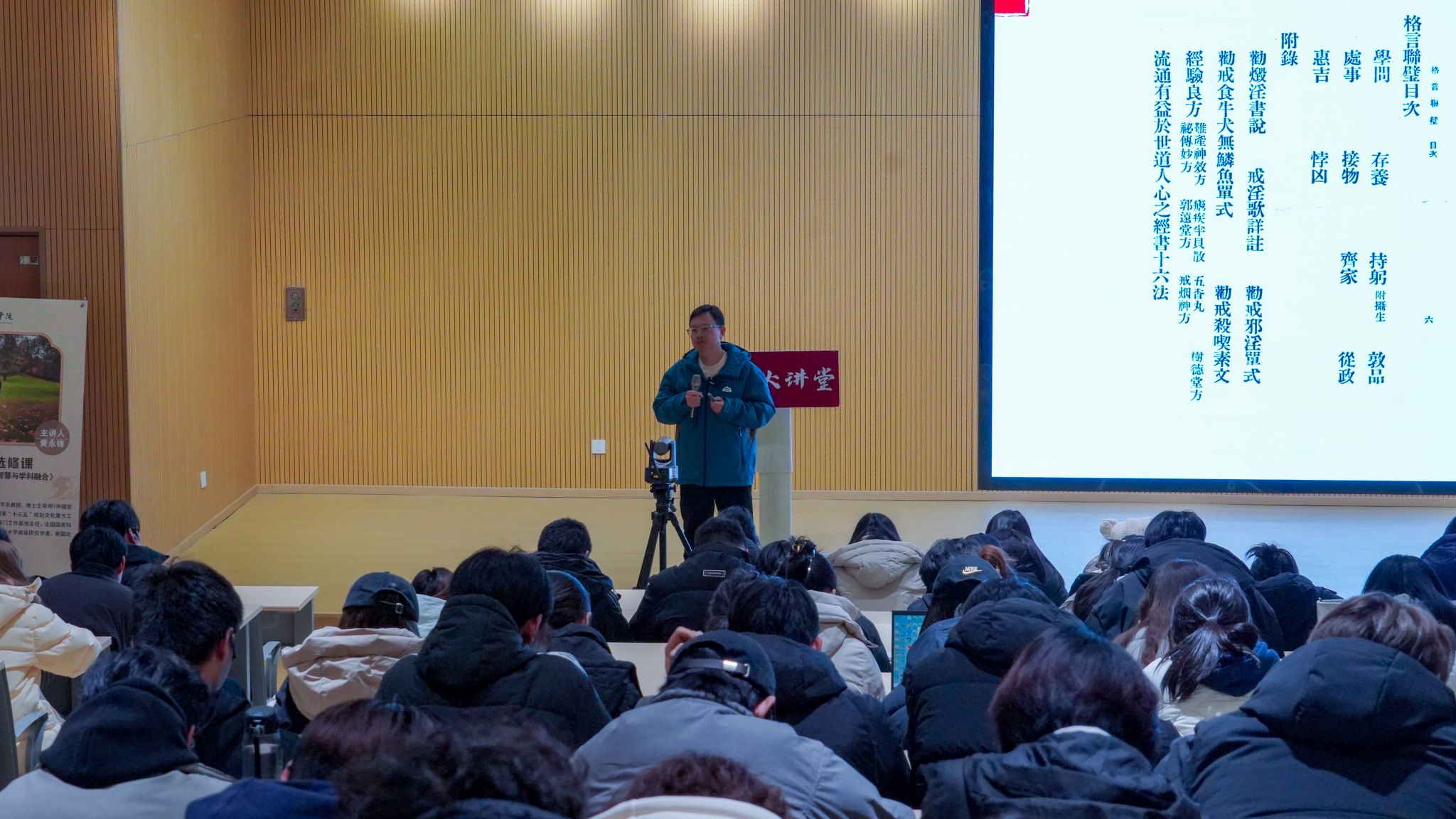 最后,黄教授以卷八《惠吉》“以积货财之心积学问,以求功名之心求道德,以爱妻子之心爱父母,以保爵位之心保国家”作结,呼吁同学们将对生活的热忱转化为求学动力,将个人成长与集体荣誉、家国责任相连。他强调,国学智慧并非束之高阁的古籍文字,而是可与校园生活、学科学习深度融合的思想资源,希望同学们在重温古典中汲取力量,让进德修业的智慧贯穿求学之路,成长为兼具深厚素养与实践能力的新时代青年。
