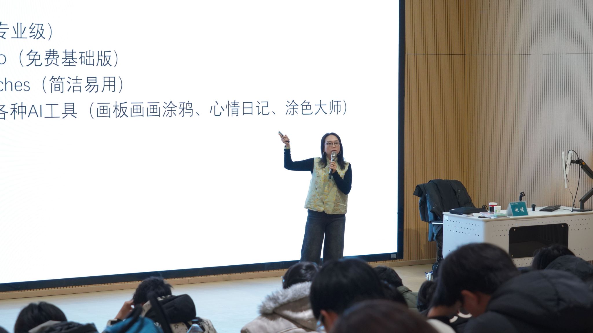 紧接着,赵老师结合大学生现状展开分享:当前65%的大学生处于中度焦虑状态,而传统心理求助存在时间、费用等门槛,轻量的“过程疗愈”正成为刚需。她指出,发呆、白日梦、画画、放空这些日常“无目的”的时刻,本身就是有效的心理疗愈方式。她还提及相关案例:这类轻量疗愈方式,也能帮助受梦魇困扰的孩子疏解情绪,核心就在于“过程中的体验与放松”。