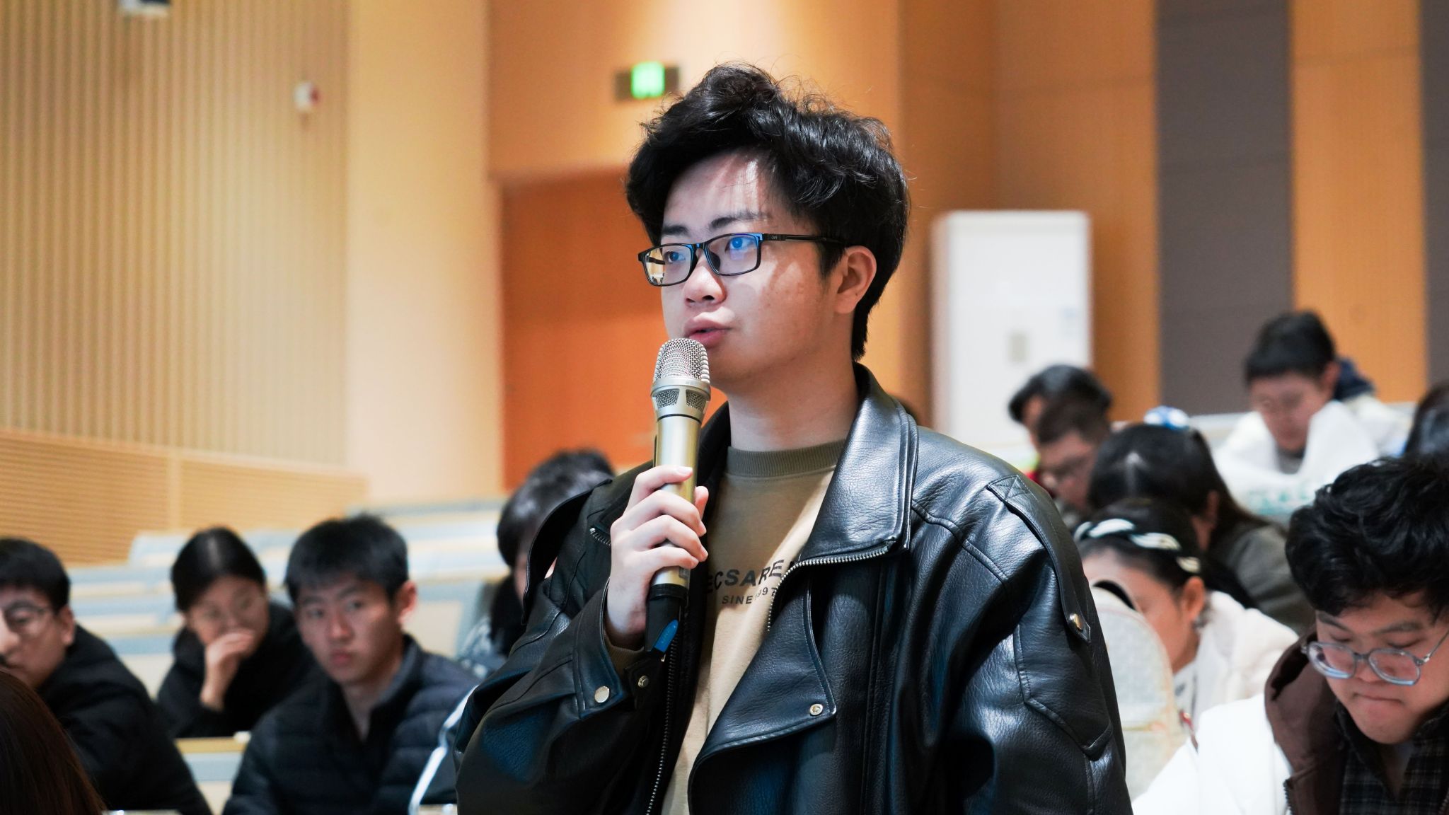 在交流环节,张教授就古典诗词如何贴近现代生活、如何应对人工智能冲击、如何在快节奏时代寻找心灵栖息等问题,与学生展开深入探讨。当被问及“人工智能会取代诗词创作吗”,张教授分享道:“我曾问AI诗是什么,它告诉我,诗词不是算法,而是‘活法’。”现场讨论热烈,学生纷纷表示这一互动加深了对诗词永恒价值的理解。