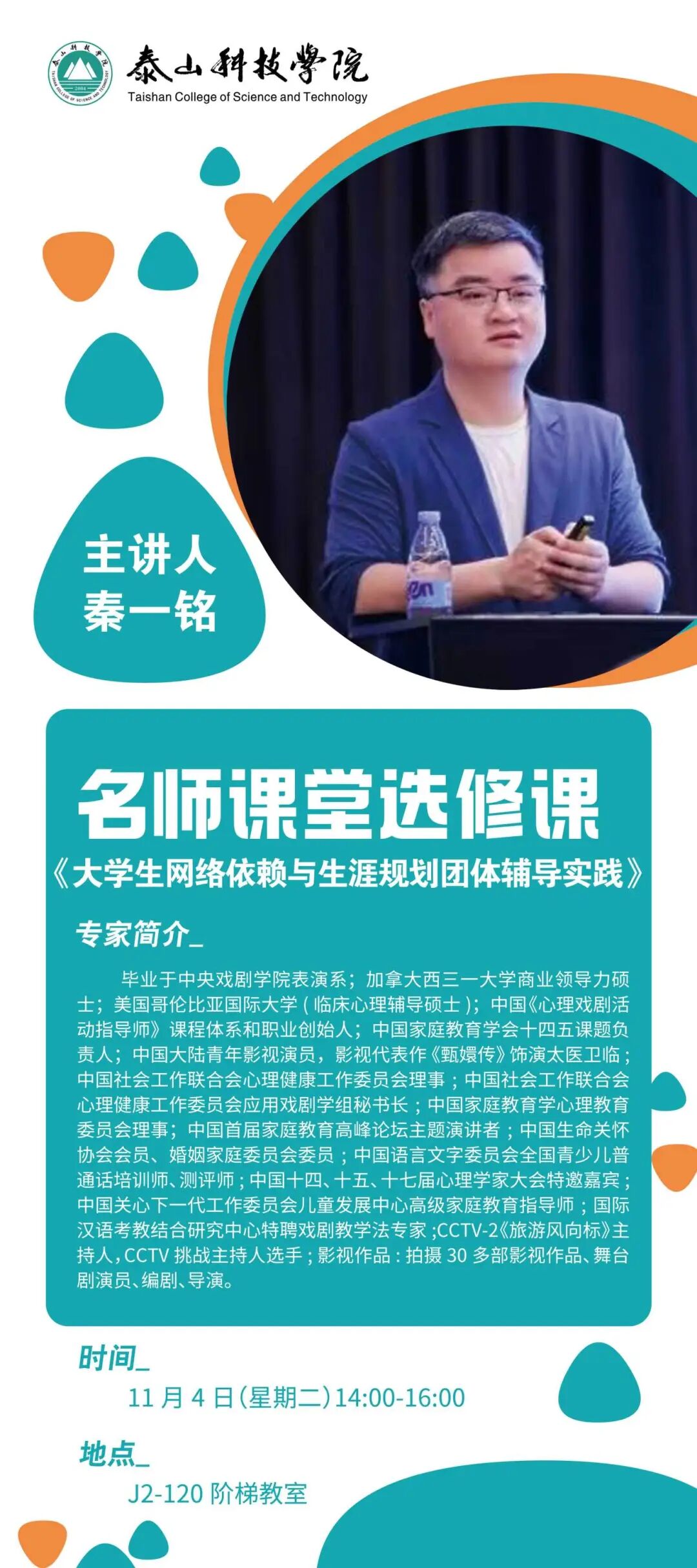 讲座时间:11月4日 (星期二) 14:00—16:00