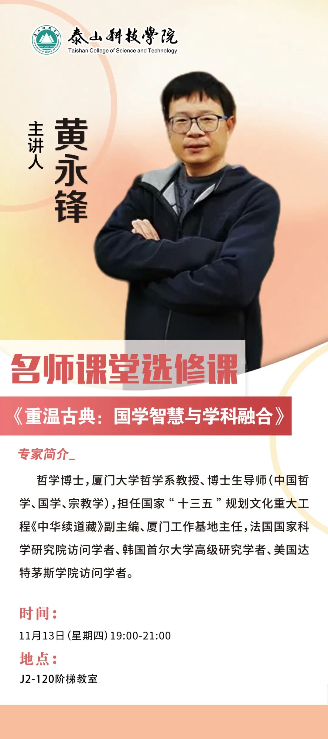 黄永锋,哲学博士,厦门大学哲学系教授、博士生导师(中国哲学、国学、宗教学),担任国家“十三五”规划文化重大工程《中华续道藏》副主编、厦门工作基地主任,法国国家科学研究院访问学者、韩国首尔大学高级研究学者、美国达特茅斯学院访问学者。