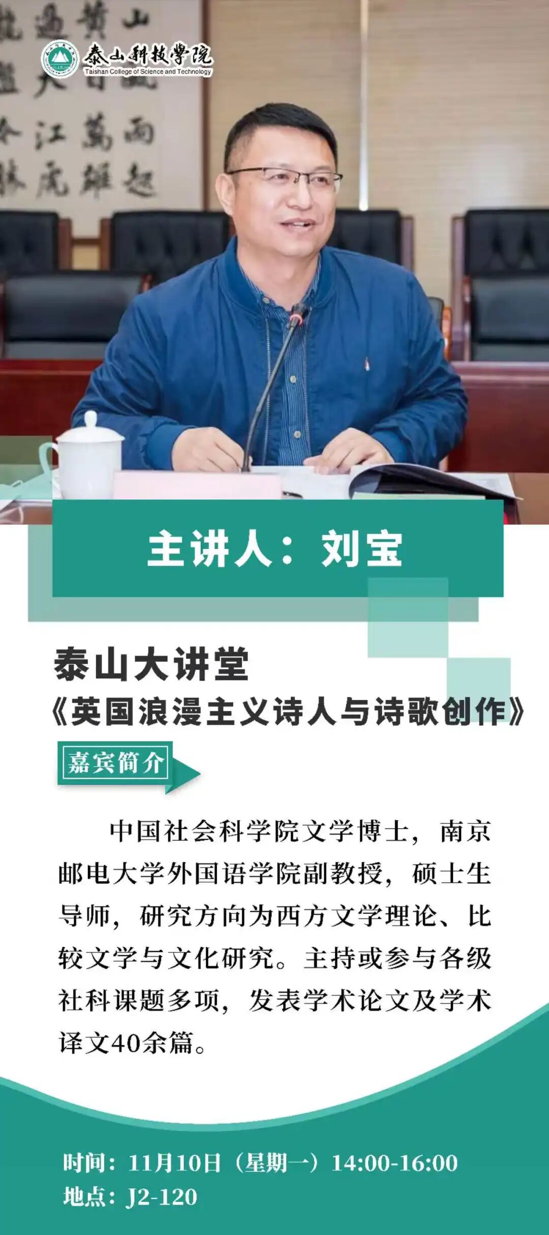 讲座时间:11月10日(星期一)14:00—16:00