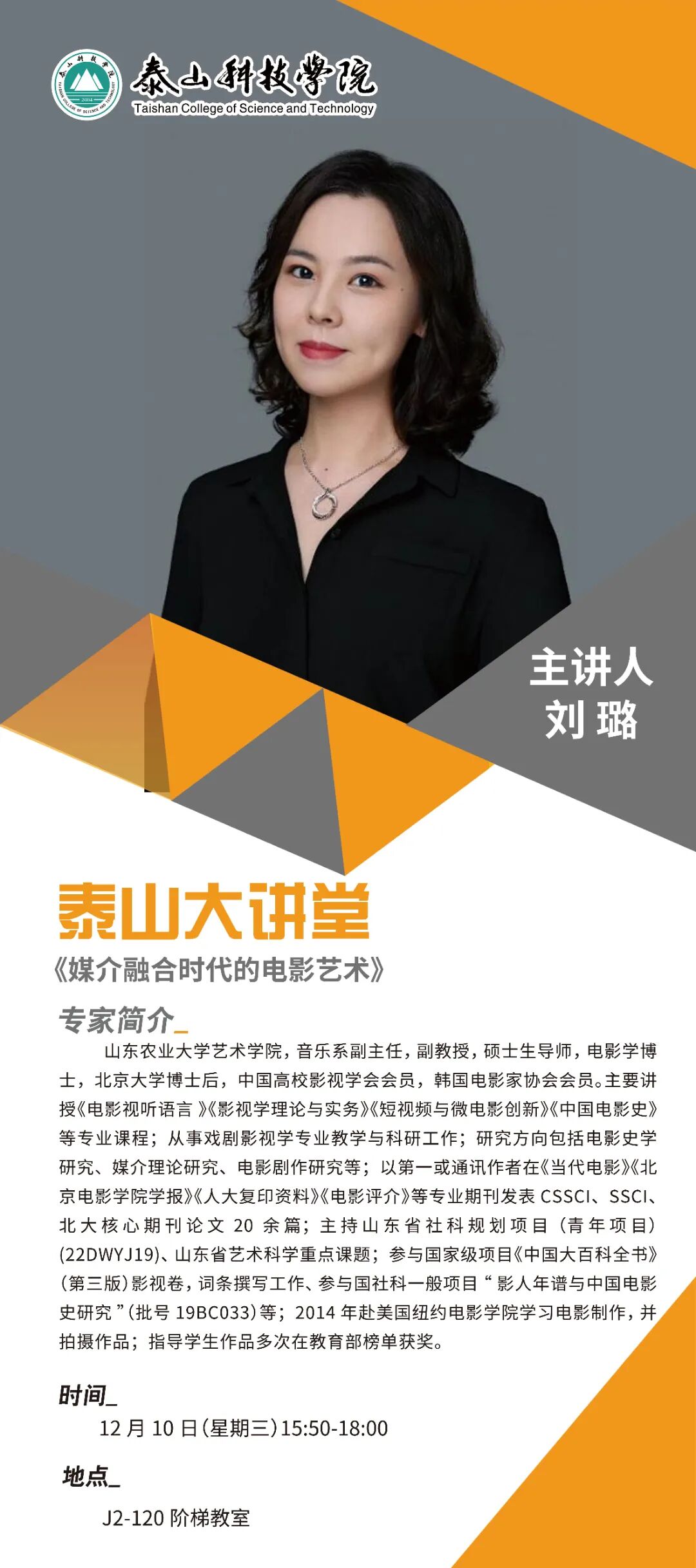 讲座时间:12月10日(星期三)15:50—18:00