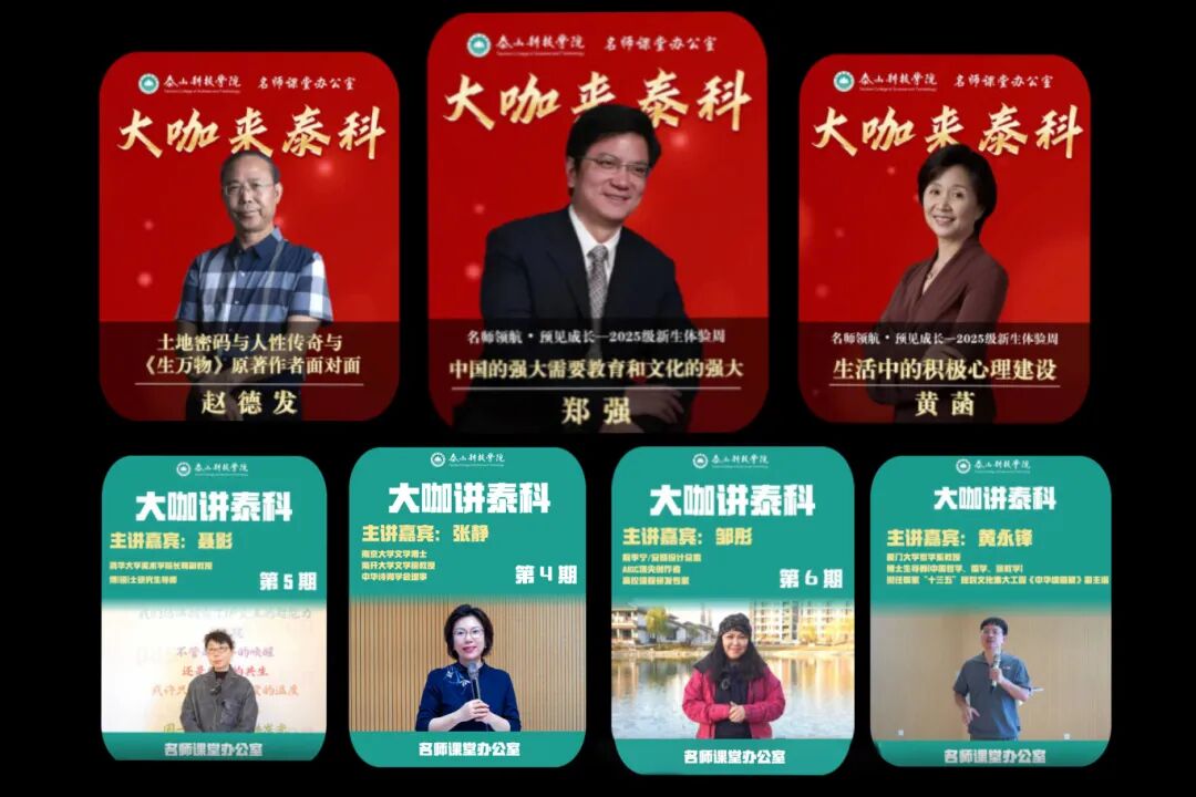 2025名师课堂办公室积极发挥桥梁纽带作用,切实服务于师生,致力于将学校打造成为中国讲座最多,最丰富的大学。以“1+1+N”模式为引擎,打造“泰山大讲堂”文化品牌,先后邀请知名学者郑强、央视主持人敬一丹、心理专家黄菡、作家赵德发、清华大学教授聂影等多位名师名家做客“泰山大讲堂”,开展历史文明、思政教育、心理建设、文化传承等多元主题讲座,全年开展讲座、课程80余场,开设选修课共计9门,累计6.5万余人次参与讲座。
